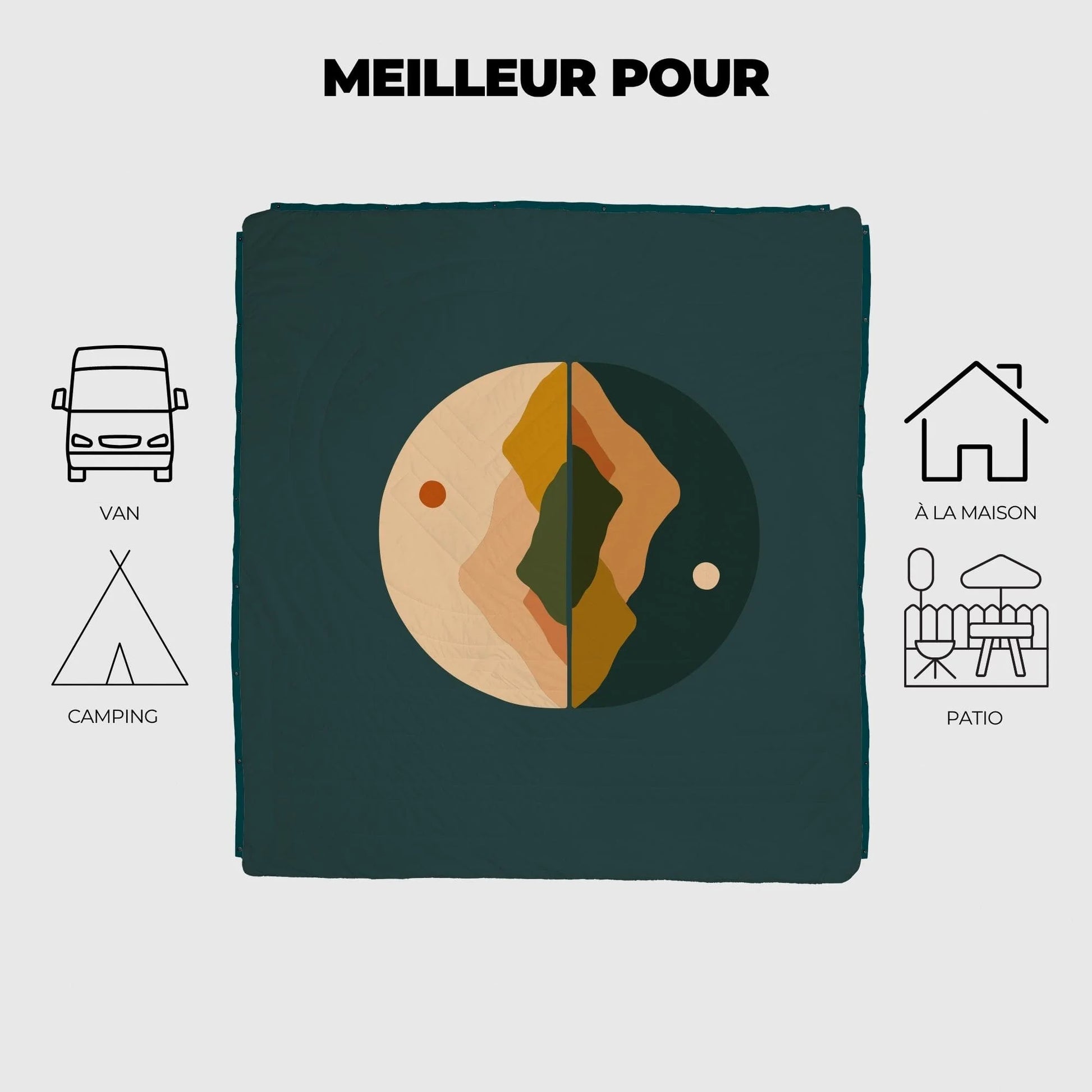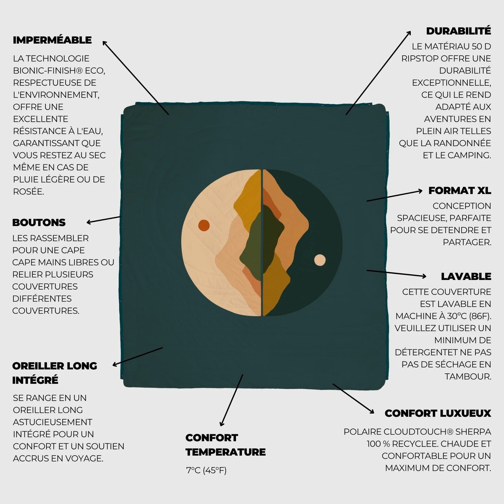 ✔ Polyvalente : couvre-lit, plaid outdoor, couverture de pique-nique ou sac de couchage léger.
