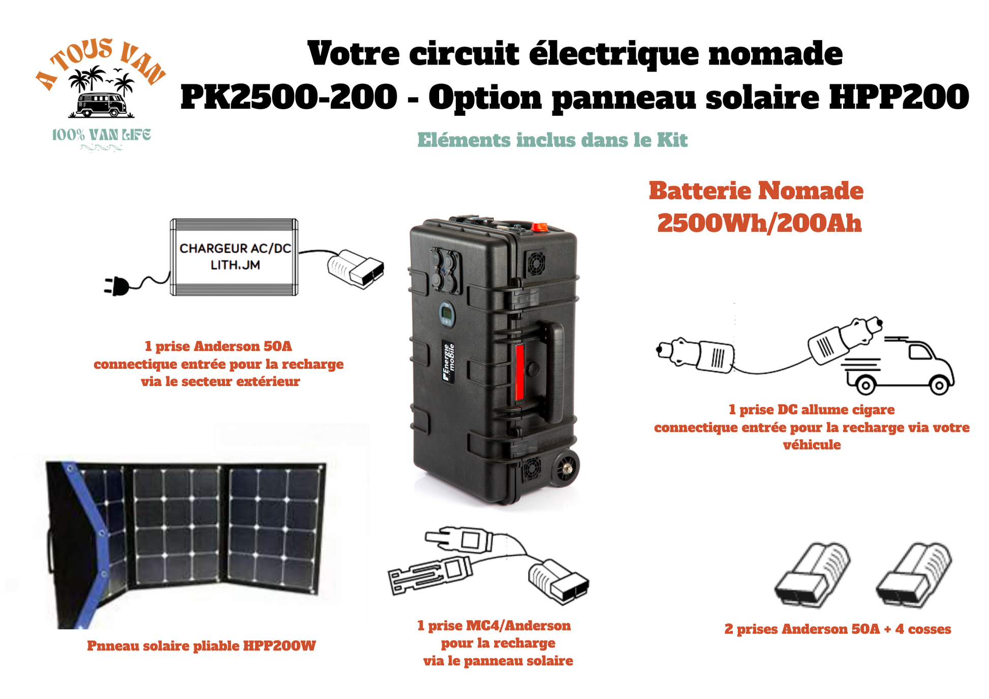 o Véhicule : 1 prise type Anderson bleue 40A